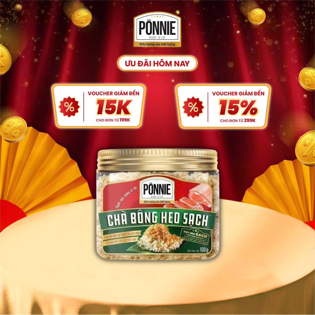 Chà bông Ponnie Heo sạch dạng hũ 100gr