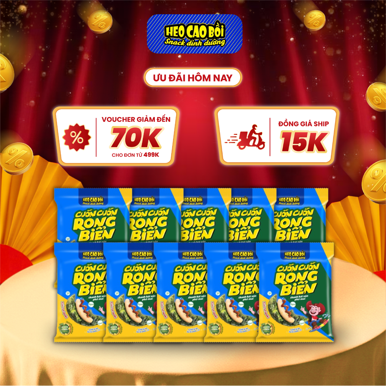 Thông tin sản phẩm: • Tên sản phẩm: Xúc xích tiệt trùng Heo Cao Bồi Cuốn Cuốn – Thanh hải sản. • Khối lượng tịnh: 3 cây xúc xích (3 × 13 g) + xốt 5.5 g + rong biển 2 g + gạo lứt 2 g. • Ngày sản xuất: Xem trên bao bì. • Xuất xứ: Việt Nam. • Nơi sản xuất: Việt Nam.