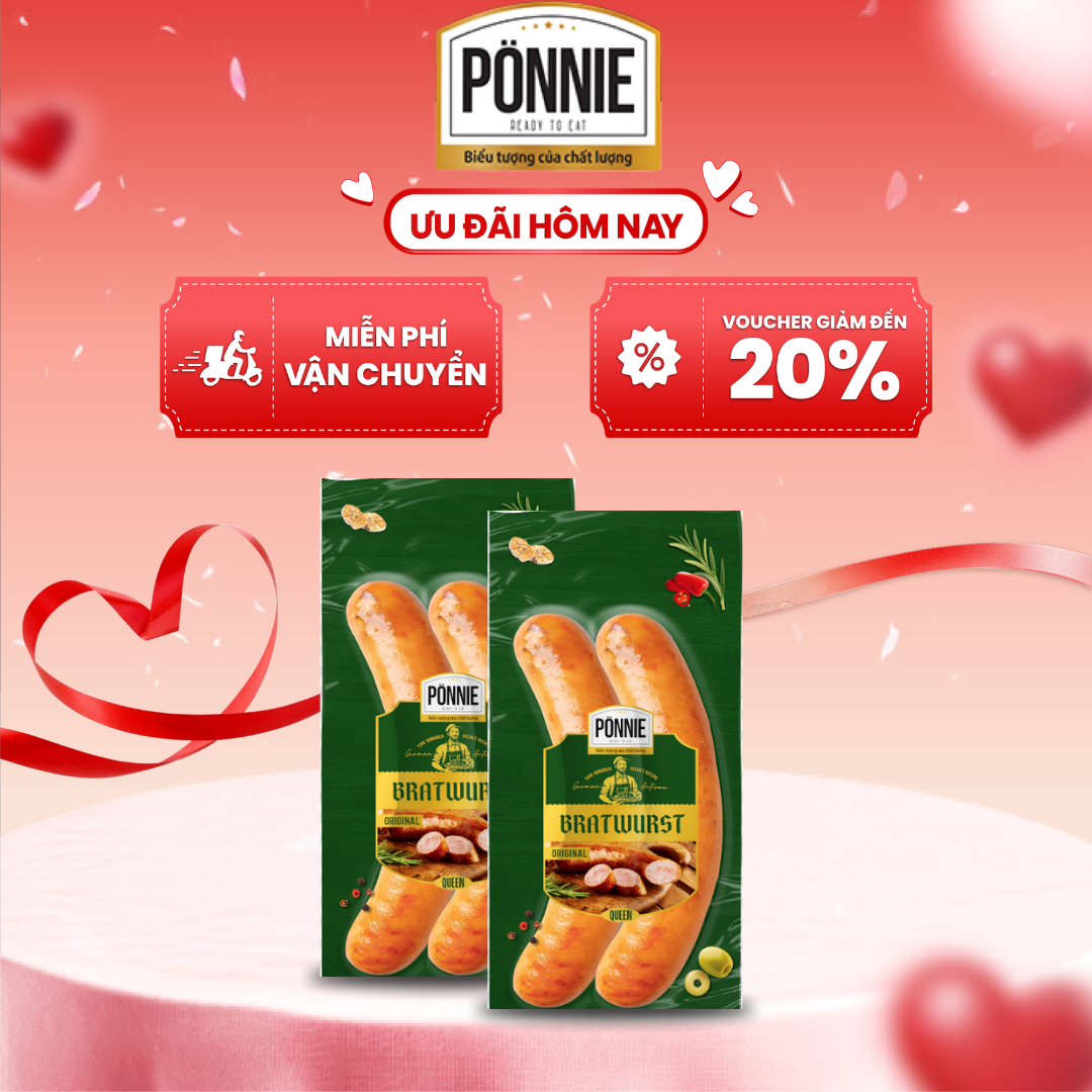 [Combo 2] Xúc xích thanh trùng Ponnie Premium vị Bratwurst xông khói 2cây x 140gr