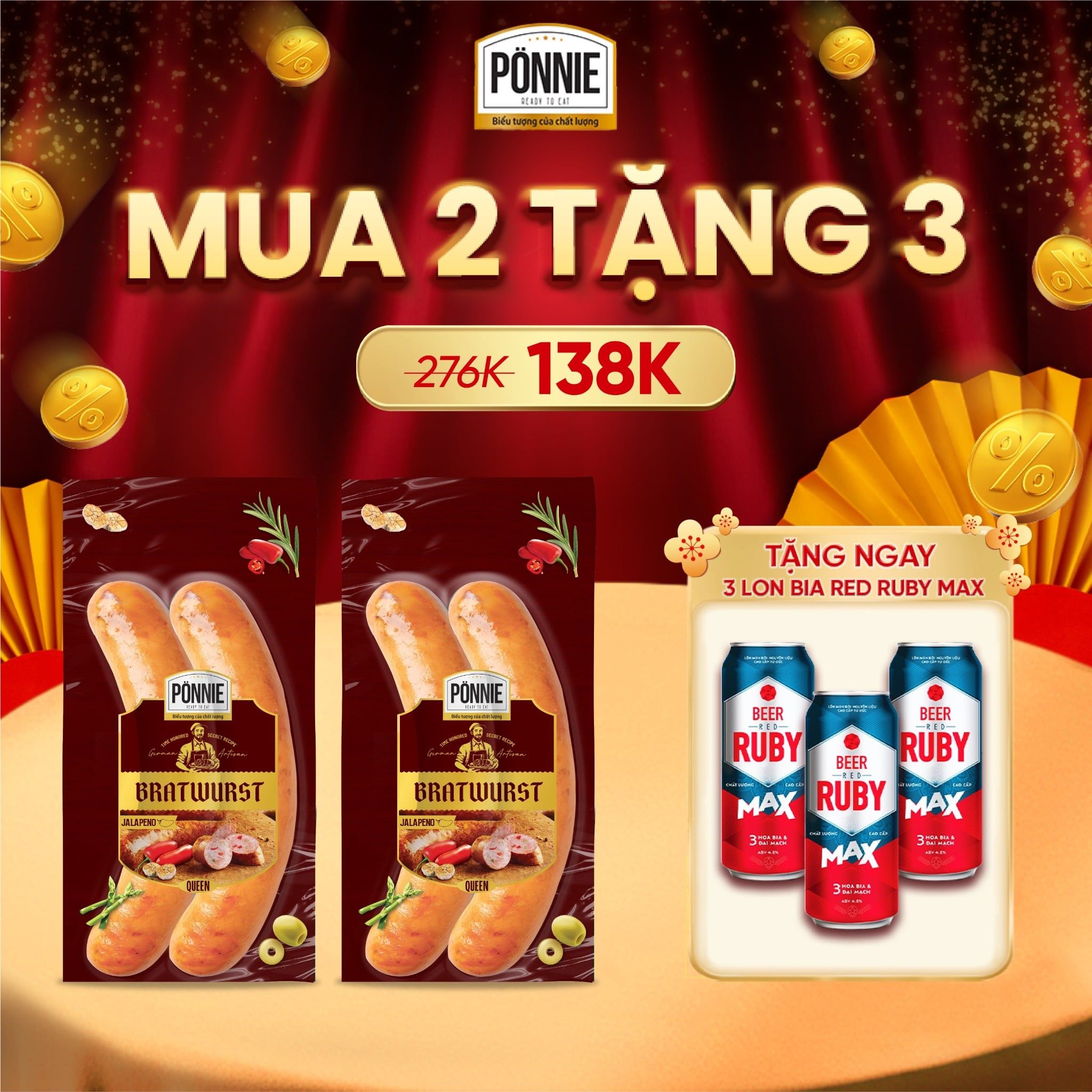 Xúc xích thanh trùng Ponnie Premium vị ớt Jalapeno 2cây x 140gr