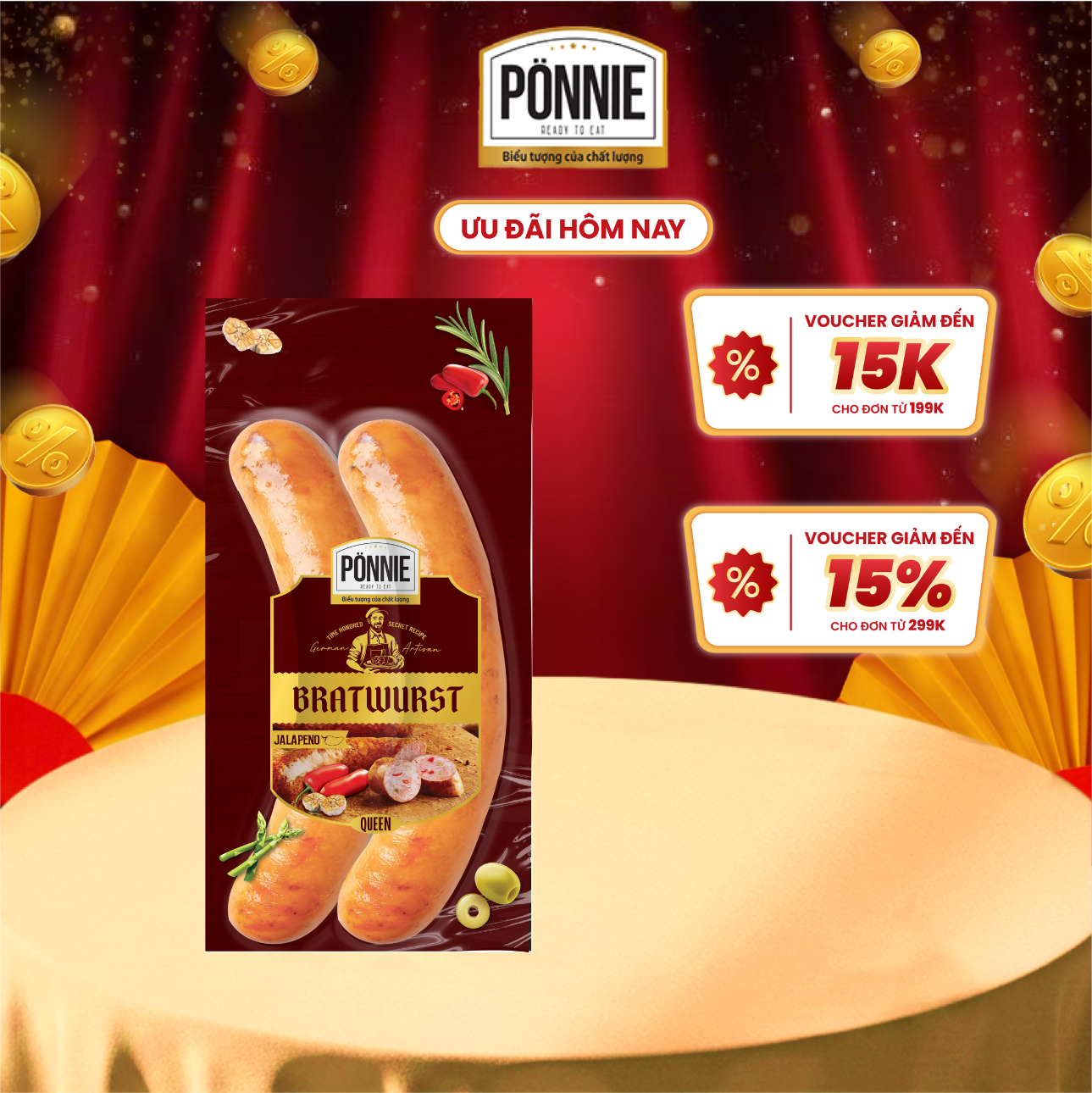 Xúc xích thanh trùng Ponnie Premium vị ớt Jalapeno 2cây x 140gr